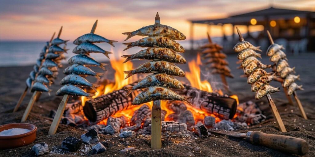 The espeto isn’t strictly a tapa, but it’s the undisputed king of Málaga’s beaches, where fresh sardines are skewered on reed canes and grilled over wood embers. This traditional method infuses the fish with a subtle smoky, juicy flavour, seasoned only with sea salt. Grab napkins—it’s eaten by hand, leaving a pleasant fishy scent on your fingers, so wash up your hands with a lemon slice or ask for wet wipes. Most intriguingly, they’re cooked on wooden boats filled with beach sand (now often steel boats), and don’t miss a photo with an espetero master by his blazing fire.